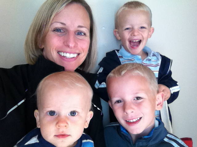 Here are my three boys and me just before leaving to take Drew to school. I can't believe this picture turned out as well as it did.